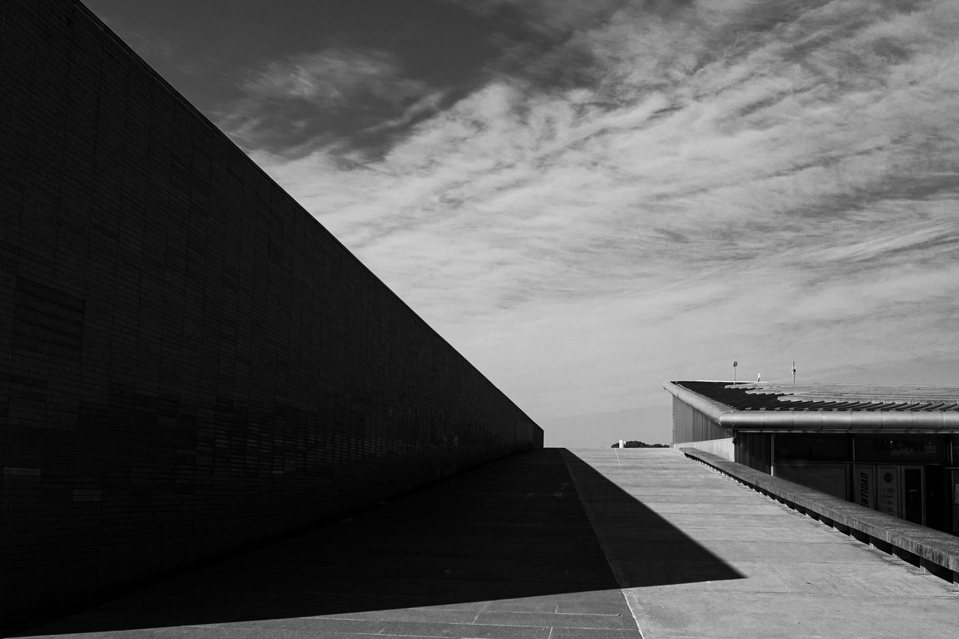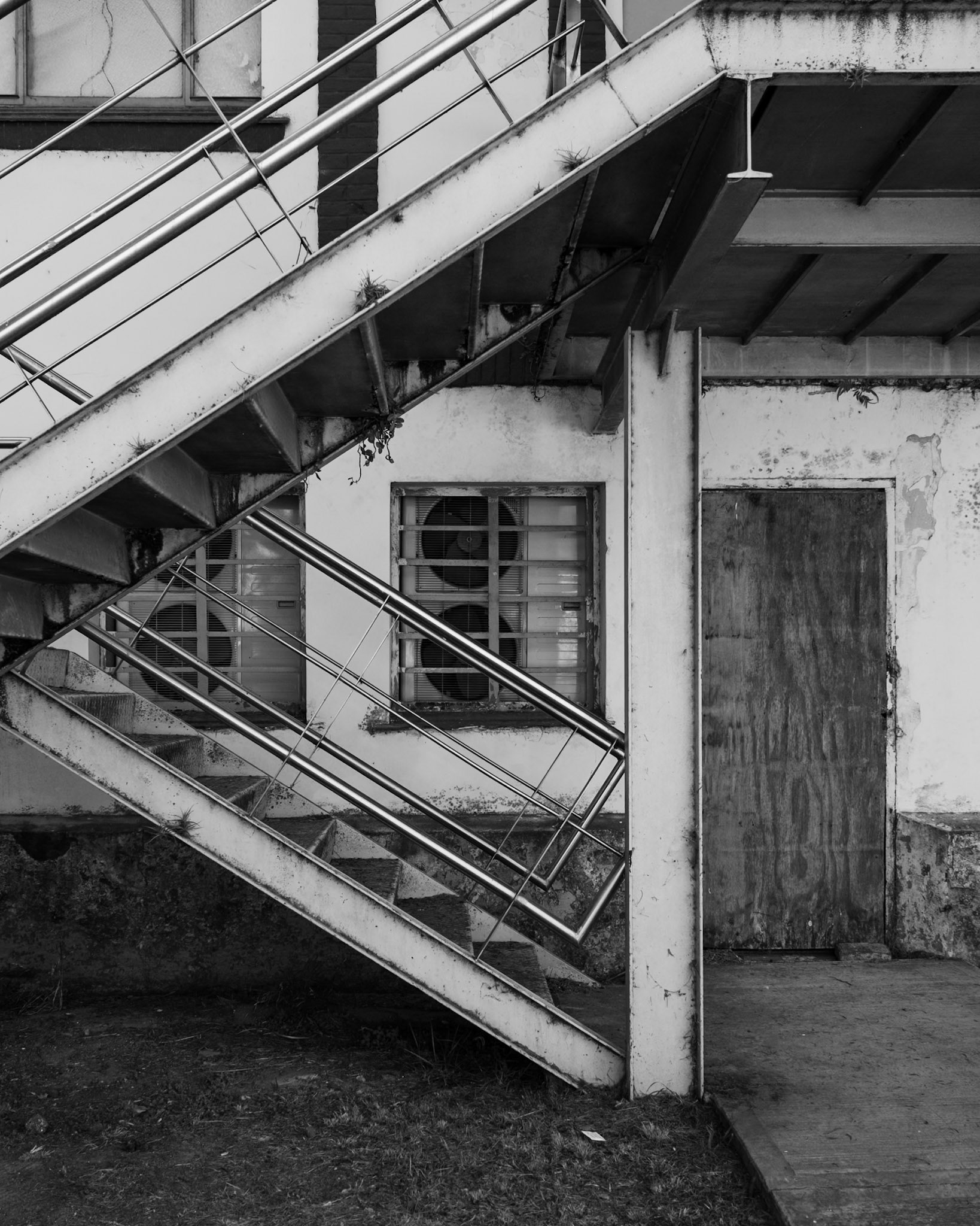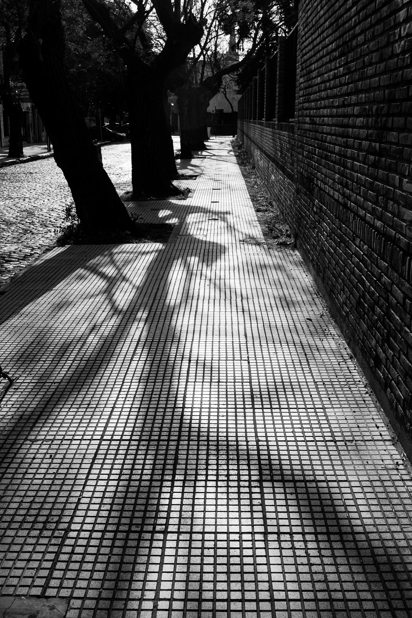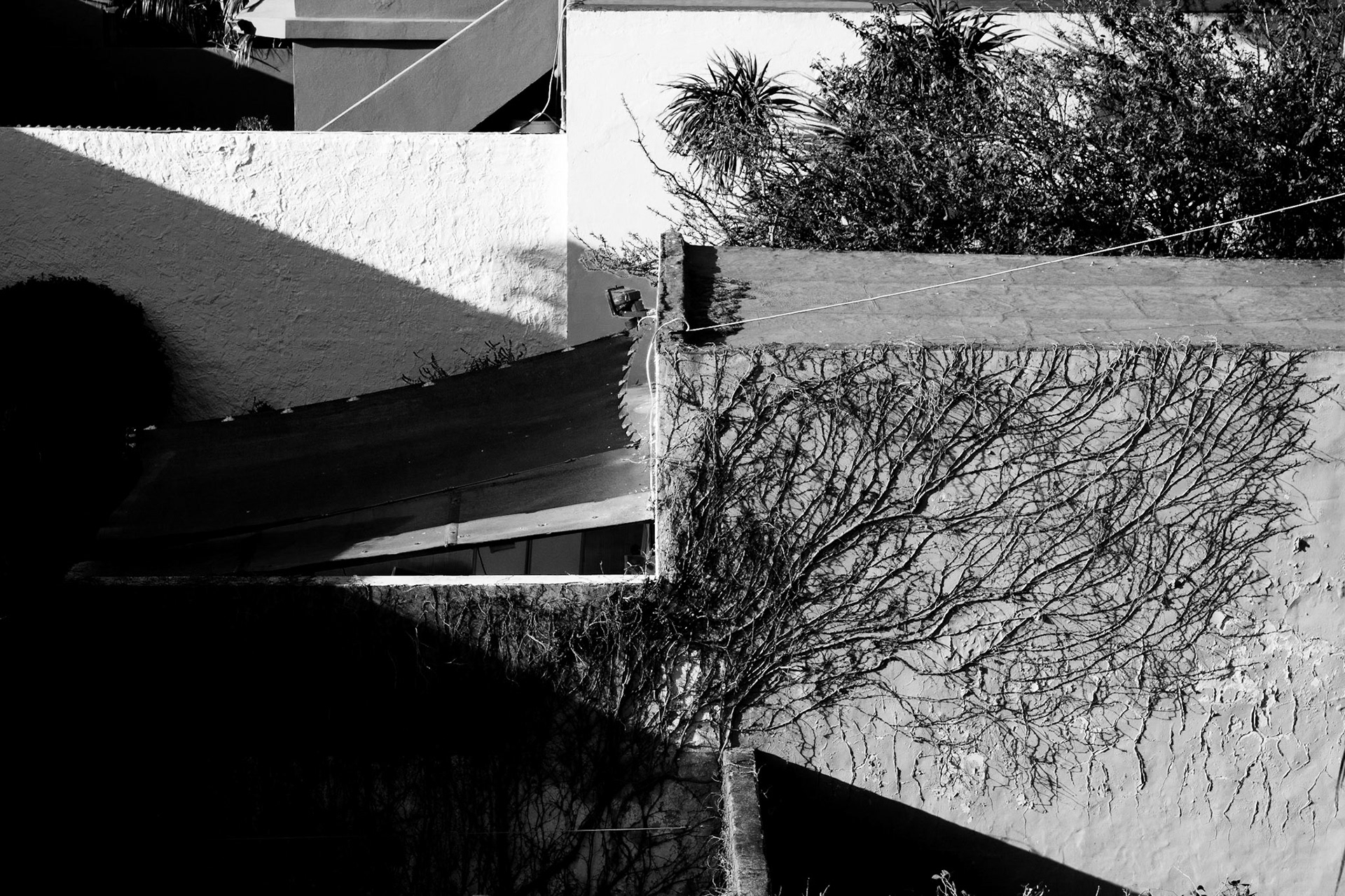 La ciudad es sometida a un proceso de síntesis formal. El blanco y negro actúa como un filtro que elimina lo anecdótico para destacar la gramática del espacio: el peso de la sombra y el rigor de la línea. Aquí, la imagen no narra un suceso, sino que explora cómo la forma organiza la mirada. Se establece así un contrapunto con La calle, proyecto donde el registro cromático sostiene el valor de documento de época.