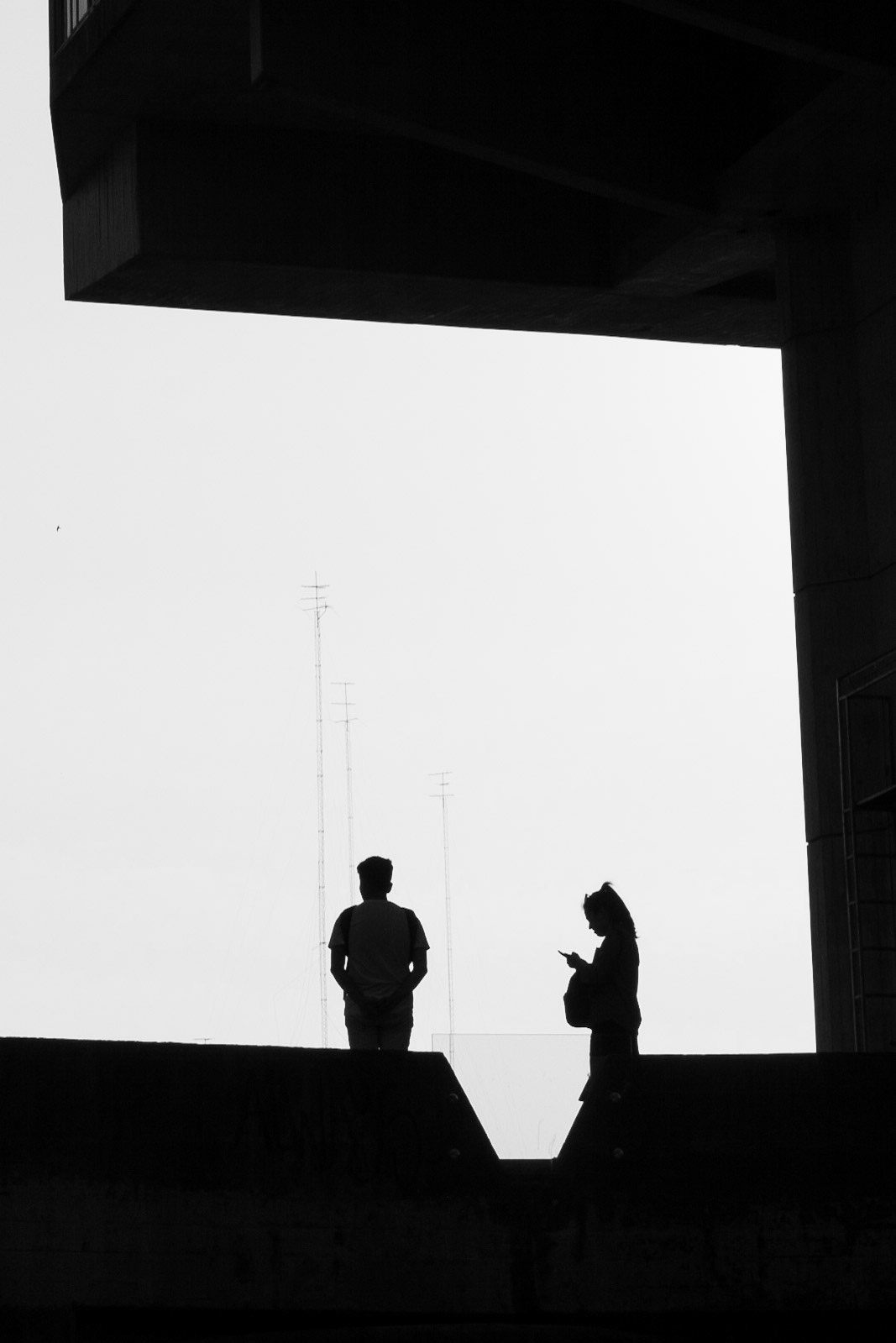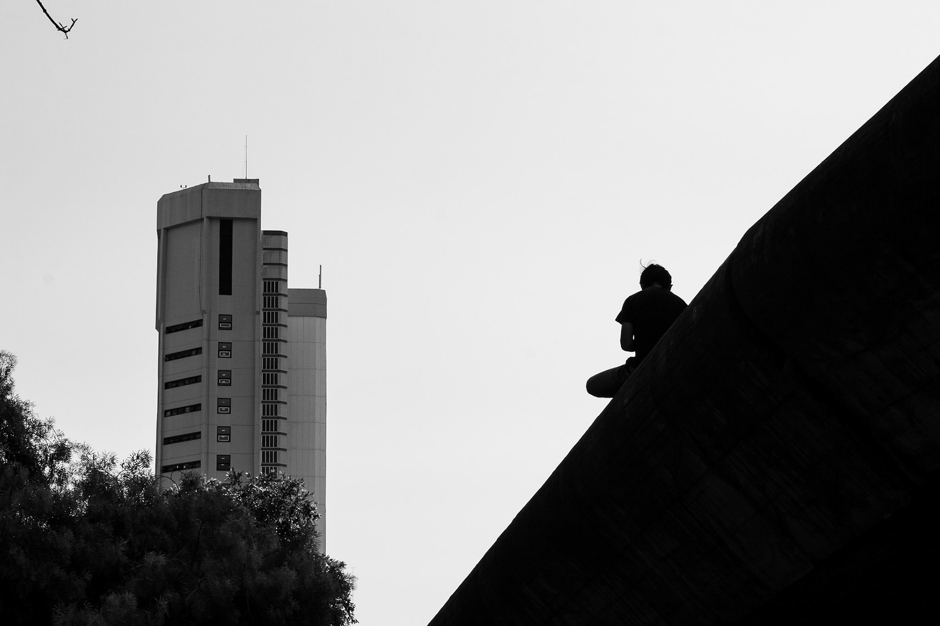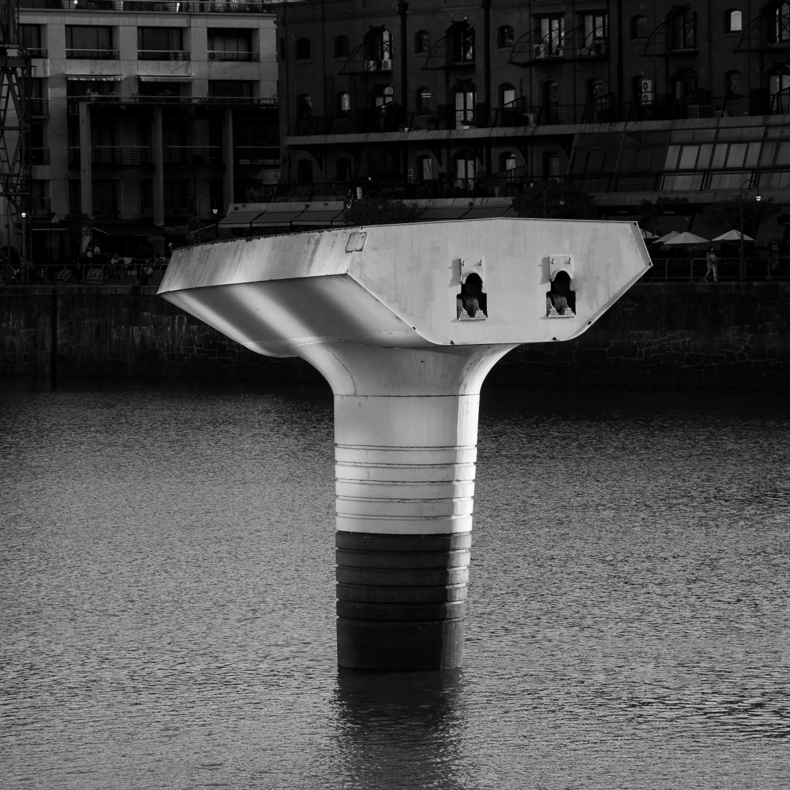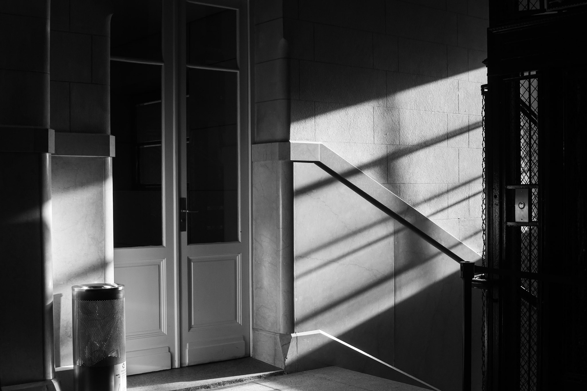La ciudad es sometida a un proceso de síntesis formal. El blanco y negro actúa como un filtro que elimina lo anecdótico para destacar la gramática del espacio: el peso de la sombra y el rigor de la línea. Aquí, la imagen no narra un suceso, sino que explora cómo la forma organiza la mirada. Se establece así un contrapunto con La calle, proyecto donde el registro cromático sostiene el valor de documento de época.
